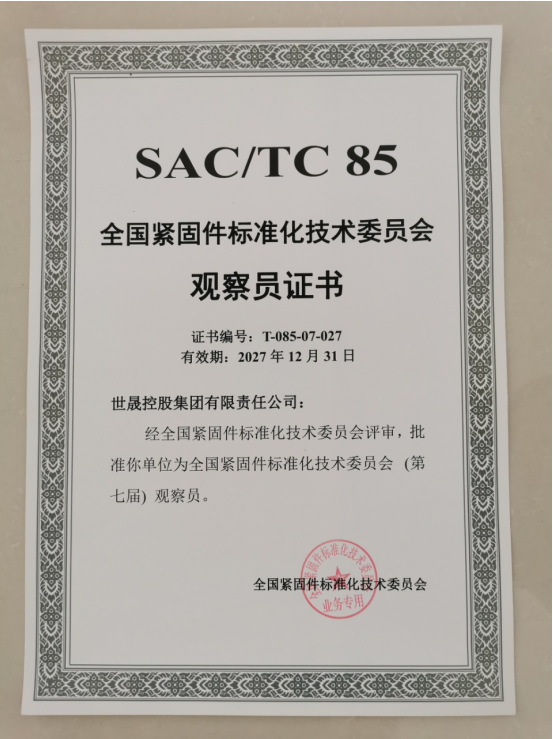全國(guó)緊固件標(biāo)準(zhǔn)化技術(shù)委員會(huì)觀察員證書