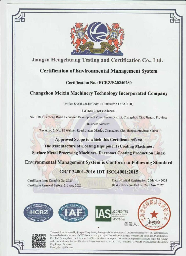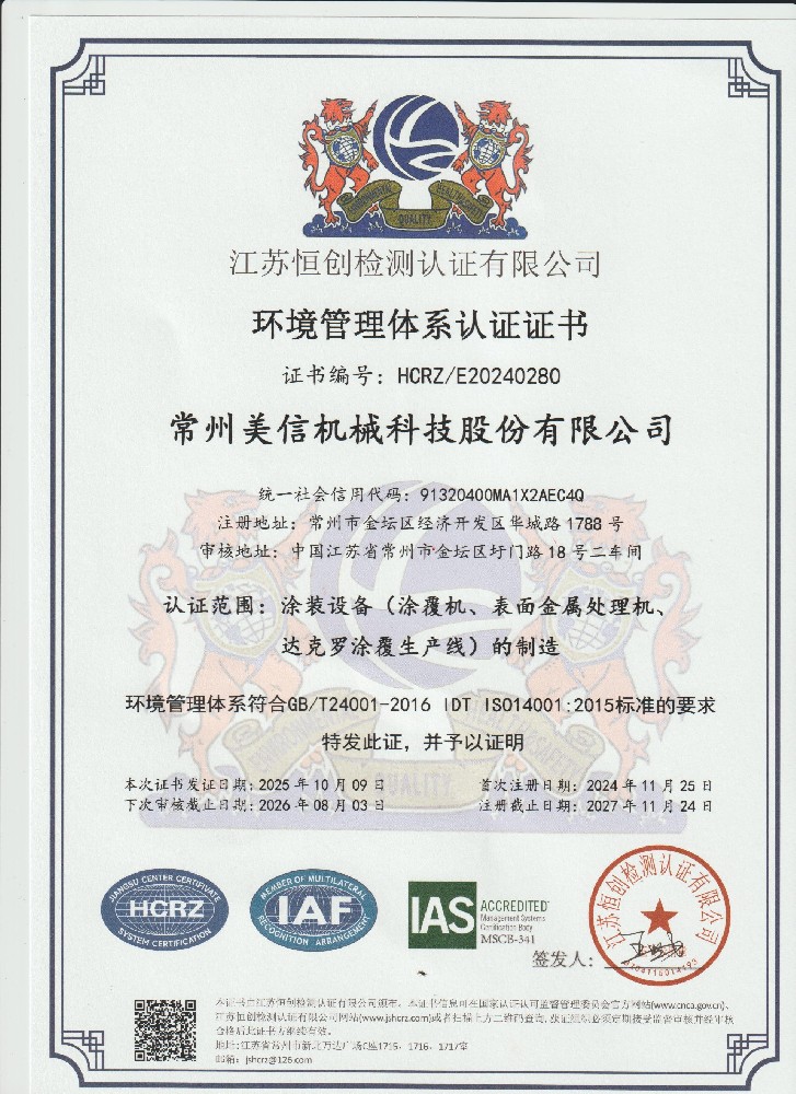 環(huán)境管理體系認(rèn)證證書(中)