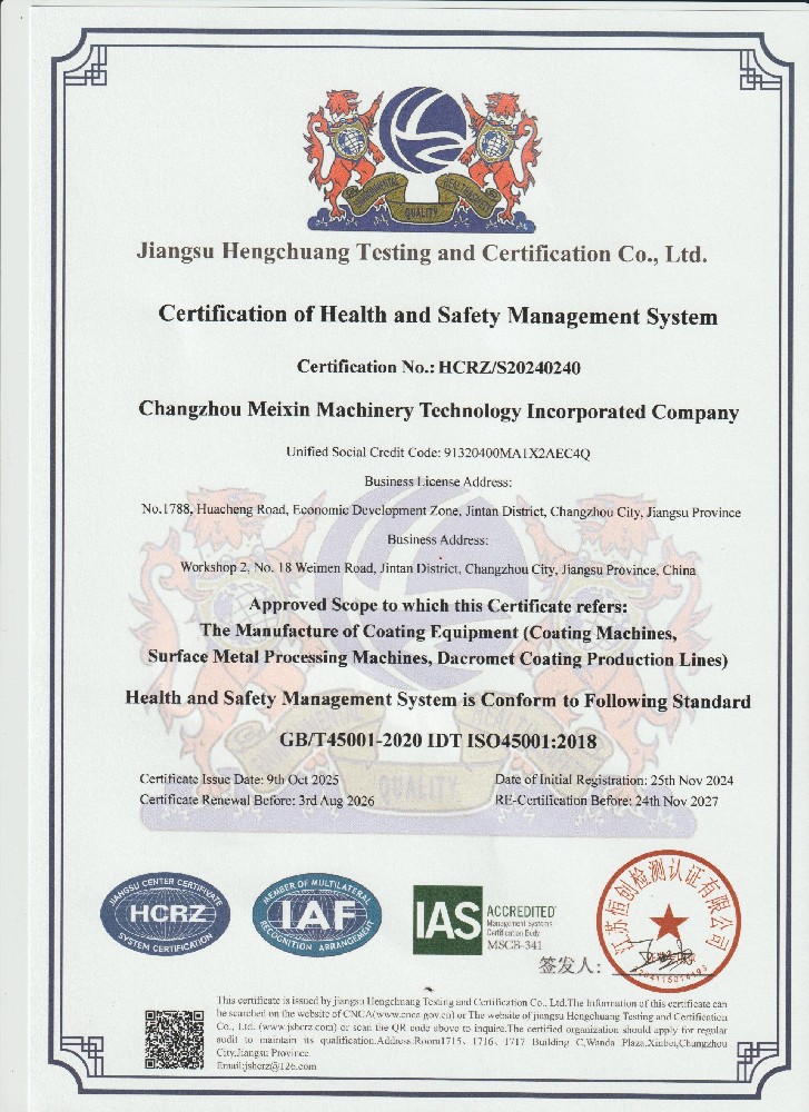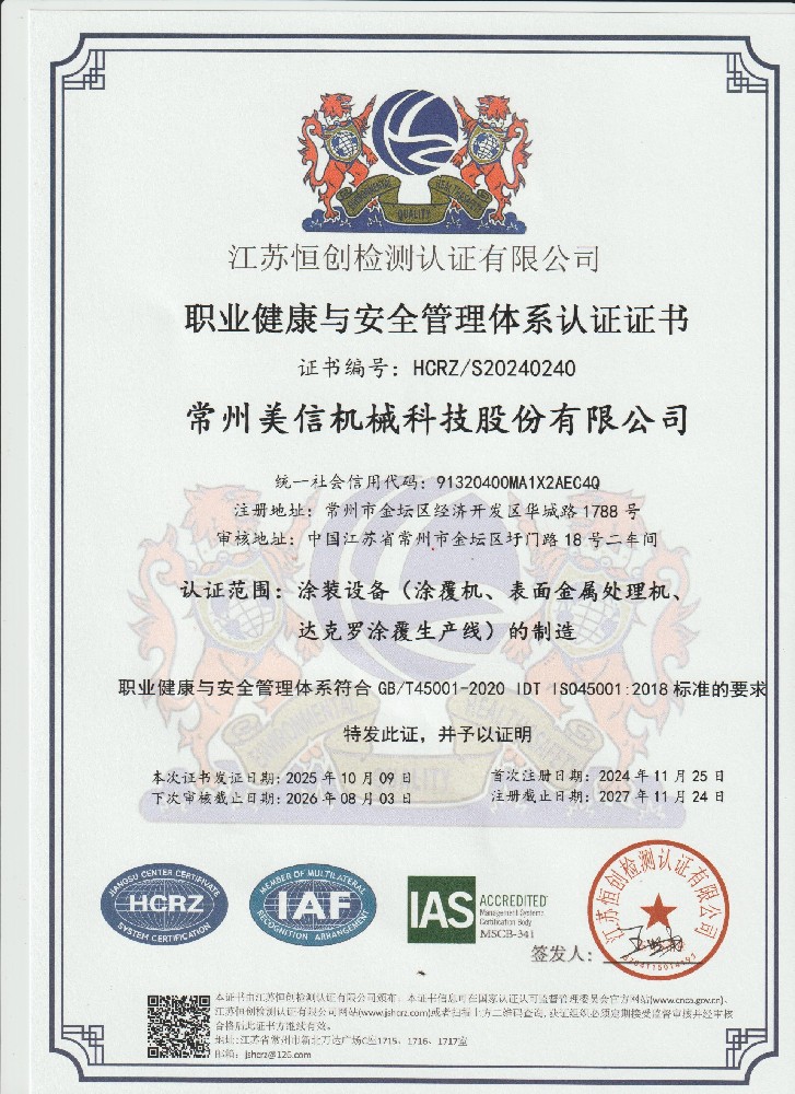 職業(yè)健康與安全管理體系認(rèn)證證書(中)